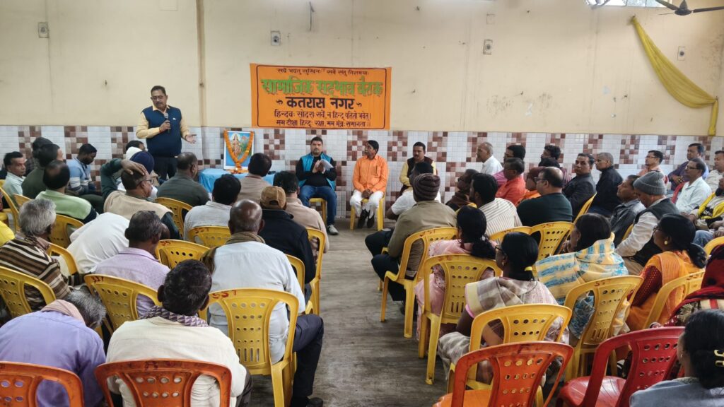 बैठक में मुख्य वक्ता इस नाते संघ के विभाग सामाजिक सद्भाव प्रमुख श्रीमान पंकज जी ने सामाजिक समरसता, आपसी सहयोग, भाईचारा एवं शांतिपूर्ण सह-अस्तित्व पर विस्तार से अपने विचार रखे। उन्होंने कहा कि समाज में फैल रही वैमनस्यता, अफवाहों और नकारात्मक सोच से दूर रहकर सकारात्मक संवाद एवं सहयोग से ही एक सशक्त समाज का निर्माण संभव है। उन्होंने कहा कि सामाजिक सद्भाव ही राष्ट्र की एकता और अखंडता की मजबूत नींव है। बैठक के दौरान सभी ने सामाजिक शांति, आपसी सम्मान और सद्भाव बनाए रखने का सामूहिक संकल्प लिया। सामूहिक भोजन के बाद कार्यक्रम की समाप्ति हुई ।