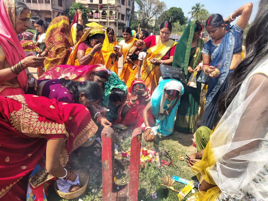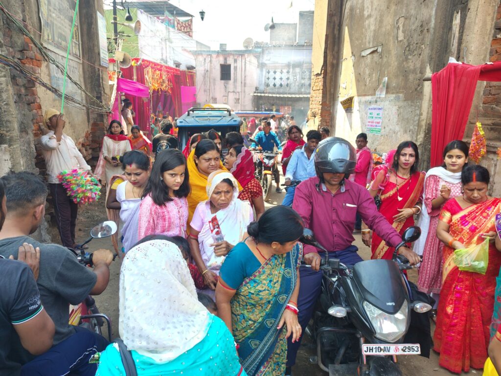 भारी भीड़ से राजबाड़ी रोड में दोपहर तक जाम लगा रहा। भीड़ को नियंत्रित करने एवं सुरक्षा के दृष्टिकोण से पुलिस प्रशासन की मौजूद रहे। वहीं सीसीटीवी कैमरे से भी सुरक्षा की निगरानी की गई। पूजा समिति के दर्जनों वोलेंटियर भी श्रद्धालुओं की सेवा में लगे रहे।