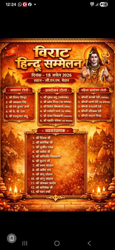 प्रेस वार्ता में आयोजन समिति के प्रमुख सदस्यों ने सम्मेलन की रूपरेखा, उद्देश्य एवं कार्यक्रम की विस्तृत जानकारी साझा की। उन्होंने बताया कि यह सम्मेलन सामाजिक एकता, समरसता, सांस्कृतिक जागरूकता एवं हिंदू समाज को सुदृढ़ करने के उद्देश्य से आयोजित किया जा रहा है।