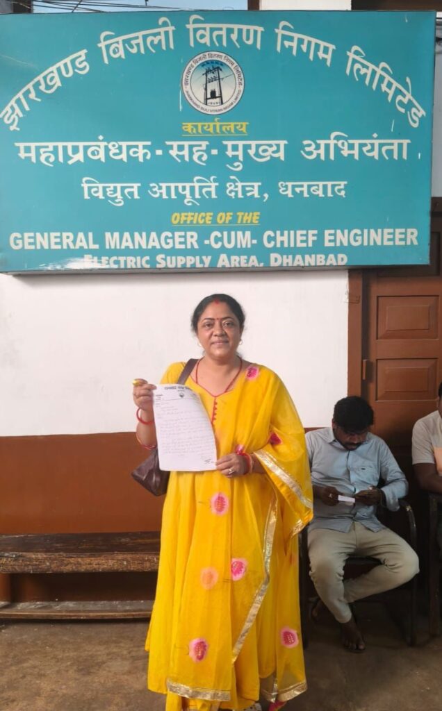 कतरास: धनबाद नगर निगम वार्ड नंबर 1 के नवनिर्वाचित पार्षद डॉ मधुमाला ने गुरुवार को झारखंड बिजली वितरण निगम लिमिटेड, धनबाद विद्युत क्षेत्र के महाप्रबंधक सह मुख्य विद्युत अभियंता अशोक कुमार सिन्हा से उनके धनबाद स्थित कार्यालय में मिलकर एक ज्ञापन सौंपा। पार्षद मधुमाला ने बताया कि जब से विद्युत विभाग द्वारा लोगों के घरों पर पुराने मीटर को हटाकर नए स्मार्ट मीटर लगाए गए हैं तब से सभी लोगों का बिजली बिल बहुत अधिक बढ़कर आ रहा है ।
