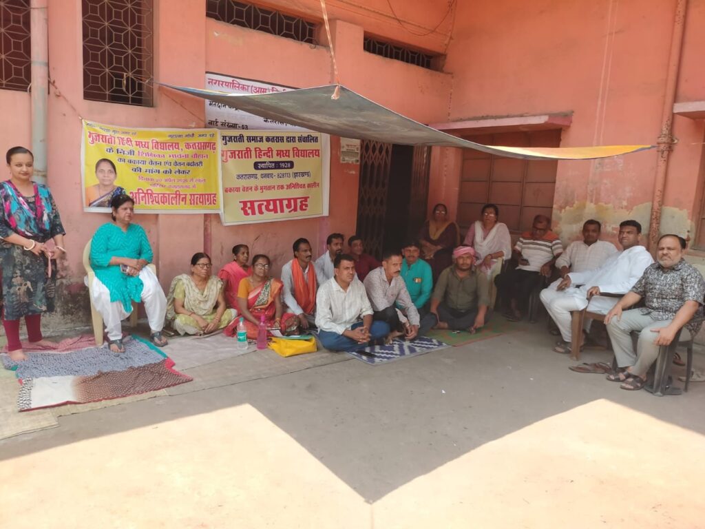 कतरास : पूर्व निर्धारित कार्यक्रम के तहत गुजराती हिंदी मध्य विद्यालय कतरास की शिक्षिका भावना चौहान पिछले 17 महीना से वेतन भुगतान नहीं किए जाने के मामले को लेकर भूख हड़ताल व अनिश्चितकालीन धरना में बैठी। भावना के साथ उसकी मां कुसुम चौहान, बेटा विनीत चौहान एवं स्कूल के कुछ अन्य शिक्षक भी धरने पर बैठे। वही क्षेत्र के जाने-माने आरटीआई कार्यकर्ता सह ग्राम स्वराज अभियान के संस्थापक जगत महतो एवं भारतीय जनता पार्टी ने भी इस धरना को समर्थन देते हुए धरना में शमिल हुए।